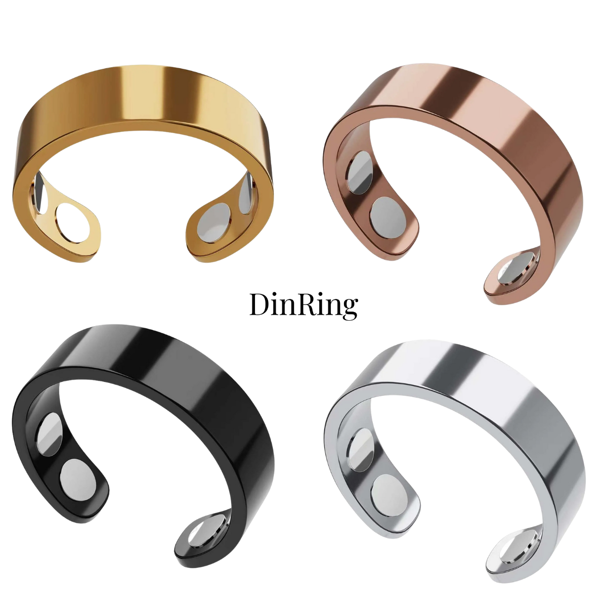 Med magneter placerade på insidan är DinRing utformad för att ha direkt kontakt med fingret under användning. Kombinationen av koppar och magneter gör ringen unik och ger ett behagligt stöd under alla situationer, helt naturligt.